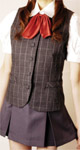一見オーソドックスな雰囲気を与えるも、かわいいちょうちん袖のブラウスや赤いリボン、ミニのプリーツスカートなどソソる小技が効いている逸品です。